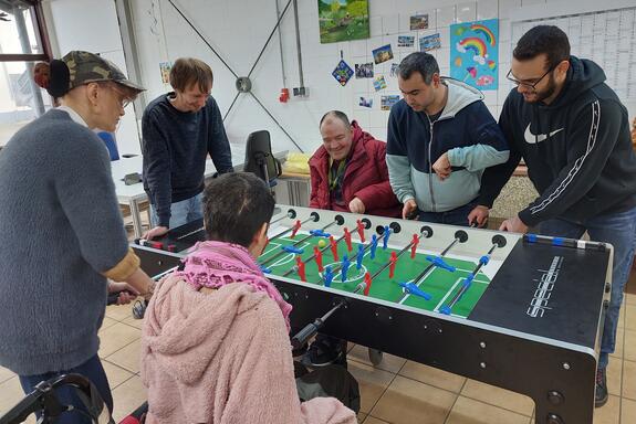 Der Beirat für Menschen mit Behinderung förderte im Dezember 2024 einen barrierefreien Kicker für den Werkstatt-Standort Langhansstraße. Nun ist er endlich da und kommt zum Einsatz!